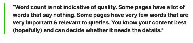 谷歌的John Muller也表示字?jǐn)?shù)越多并不表示質(zhì)量越高: