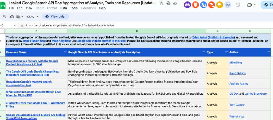 最后,關于泄露文檔相關的所有分析、工具、線上討論,Aleyda Solis有做一些Google文檔的匯總,感興趣的可以看下。