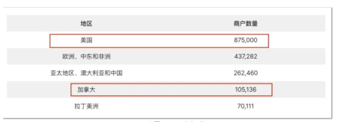 北美是Shopify最大的市場,收入占比最高,特別是美國和加拿大。由于Shopify的總部設在加拿大,并且在美國市場有著深厚的用戶基礎和影響力。