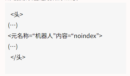 這是直接在網頁的HTML上寫meta標簽并設置noindex的方法。在“head”部分寫入以下內容,搜索引擎爬蟲在此讀取網站信息。