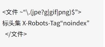 元標記不能應用于非HTML文檔的內容,例如PDF、視頻文件和圖像文件。所以在HTTP響應頭中添加一個字段并設置noindex。