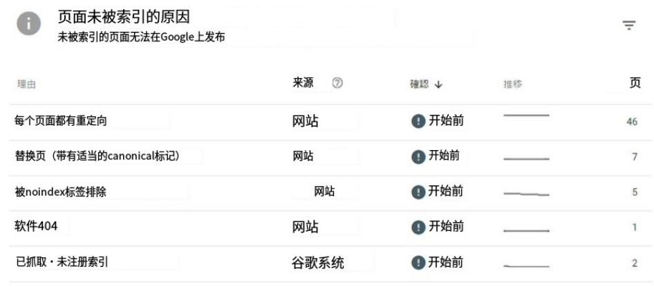 您可以通過打開“頁面”菜單來檢查索引狀態。由于noindex標記而未編入索引的頁面在“頁面未編入索引的原因”下顯示為“被noindex標記排除”。