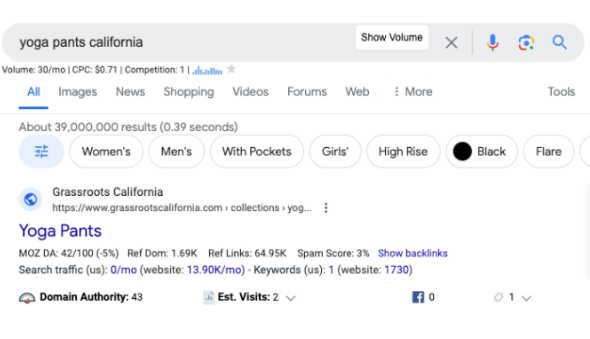 我覺得答案是肯定的,且如果有想獲取更高收益的話,最好是將程序化SEO與Local SEO結合起來去做。目前我手上有兩個案例網站在研究觀察,這里就隨便舉個簡單的瑜伽褲(yoga pants)例子。