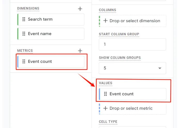 5. 將“Search term”拖動到“ ROWS”區域。把 SHOW ROWS改成500
