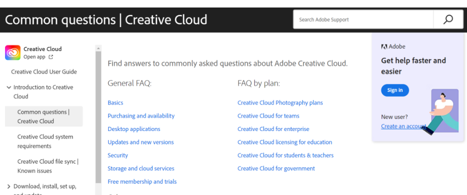 如果你的FAQs比較多,為了改善用戶體驗,請使用項目符號、表格或不同字體樣式等樣式元素來分解文本,或者使用其他格式設置來增加可讀性。或者可以像Adobe這樣進行分類,或者分層。
