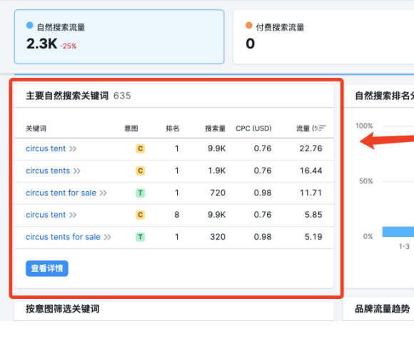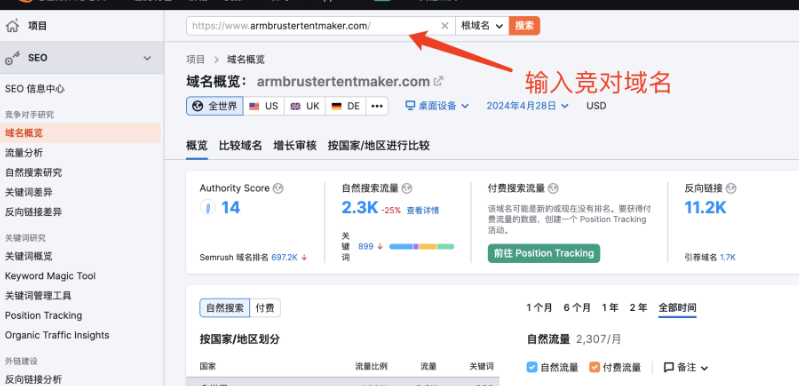 把網站域名放入到Semrush里進行搜索查詢。如圖: