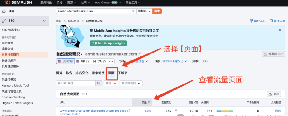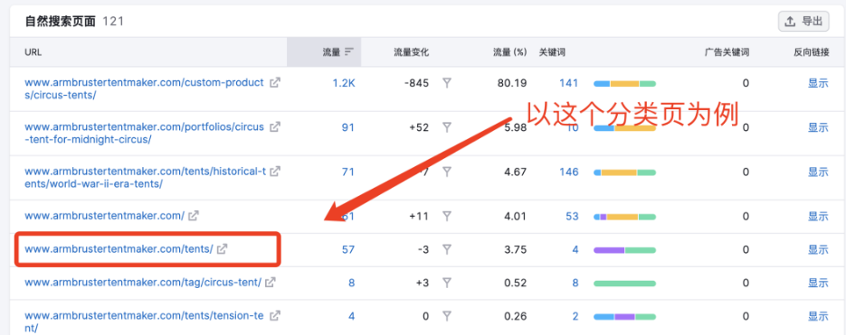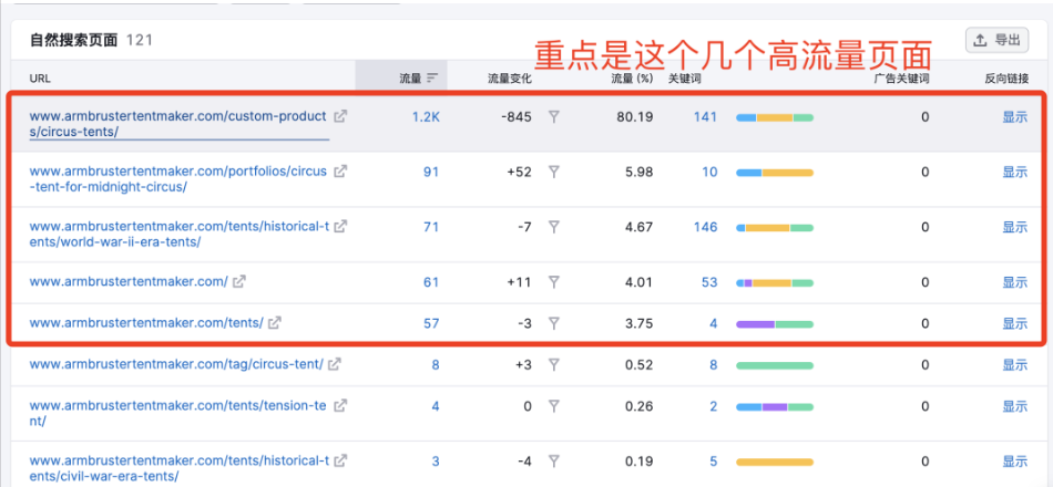 然后我們要重點關注它的高流量頁面。如圖: