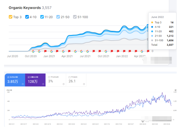 負責過一個情趣用品獨立站的整體運營,純SEO推廣,0-1建站,制定SEO優化策略,制定營銷方案,市場洞察。網站月均流量6萬,核心關鍵詞排名前10。如圖:
