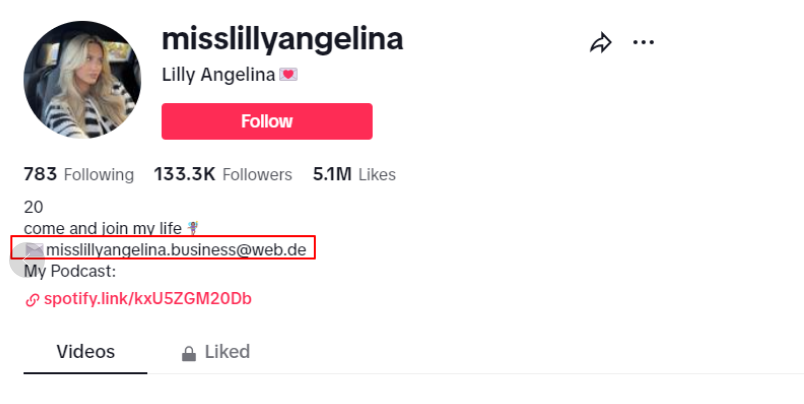 尋找TikTok網紅的方式有很多,最直接的就是在TikTok站內搜索,很多紅人主頁會放上聯系方式,一般是郵箱(郵件聯系模板可借助ChatGPT)。