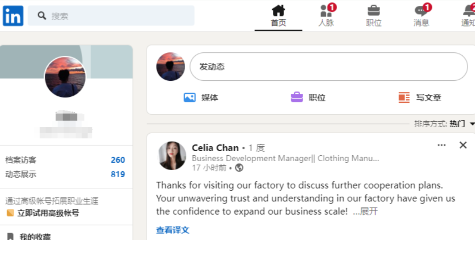 領(lǐng)英(LinkedIn)作為全球最大的職場社交平臺(tái),對(duì)于外貿(mào)公司來說,作用有多大就不需要我贅述了吧。公司主頁作為公司在領(lǐng)英上的官方主頁,基本上就相當(dāng)于公司的官網(wǎng),一般領(lǐng)英公司主頁會(huì)有公司官網(wǎng)、公司介紹、公司員工關(guān)聯(lián)等等,基本上通過公司領(lǐng)英主頁,就可以看到了解這家公司的基本情況,對(duì)于公司宣傳是非常有用的,今天就來給大家分享一下如何創(chuàng)建領(lǐng)英公司主頁。