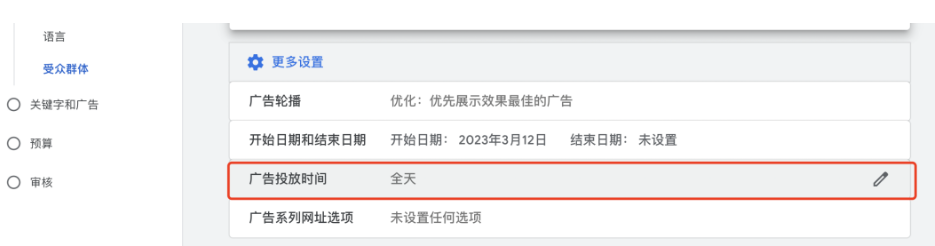 對于單個廣告系列或者廣告組的信息,則在對應的系列或者廣告組設置