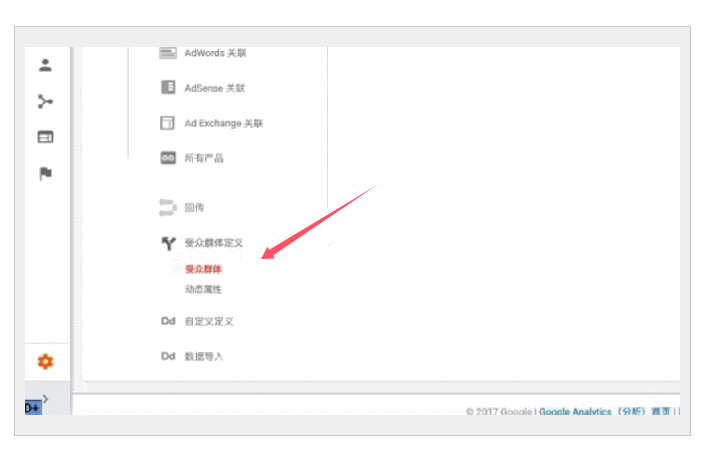 下面我們來做第三個重要設置:點擊管理>受眾群體定義>受眾群體。