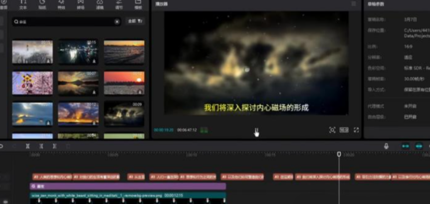 此外,剪映還提供了豐富的素材庫,你可以根據需要,搜索和下載各種免費的視頻素材,例如“命運”、“心靈”、“宇宙”等,豐富視頻內容。