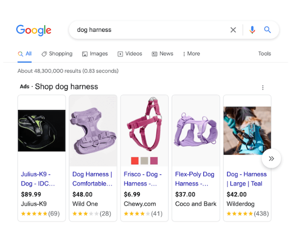3.購物廣告:購物廣告主要用于展示產品圖片、價格和描述,當用戶搜索與你的產品相關的關鍵詞時,你的購物廣告就會出現在搜索結果頁面上。購物廣告可以直接引導用戶進行購買,提高轉化率。如圖: