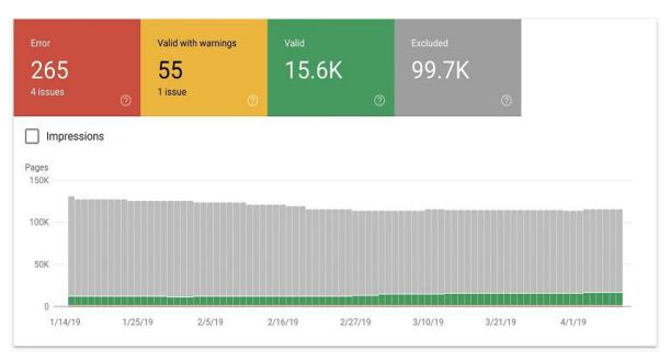 這些圖表數(shù)據(jù)如果能保持一致是最好的,任何重大波動都會出問題,可能是HTML損壞,內(nèi)容陳舊或robots.txt文件阻止了太多URL。