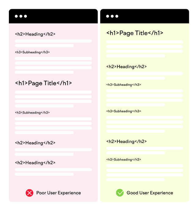 H標簽幫助創建了清晰的內容層次結構,使得頁面內容更加有組織。一個清晰的頁面內容結構更有助于用戶瀏覽,如下圖: