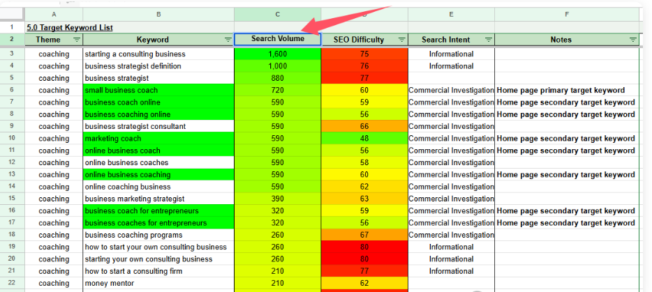 打開您的主關(guān)鍵字列表,然后按搜索量列從高到低進(jìn)行排序。