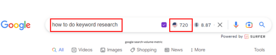 例如,根據(jù)Keyword Surfer瀏覽器擴(kuò)展程序的數(shù)據(jù)顯示,在整個(gè)美國(guó),Google上關(guān)于如何進(jìn)行關(guān)鍵詞研究的搜索量平均每月為720次。如圖: