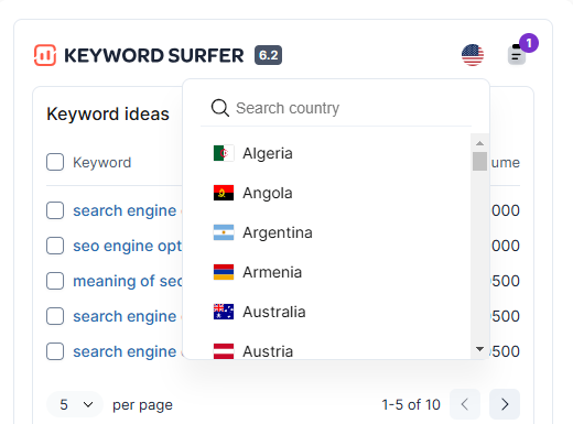 如果您的列表不那么長(zhǎng),您可以使用Keyword Surfer瀏覽器擴(kuò)展程序手動(dòng)獲取搜索量。