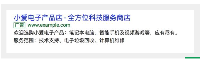 添加網頁的鏈接,可以引導用戶直接從搜索的廣告信息中直接跳轉至產品頁面等特定頁面。如圖: