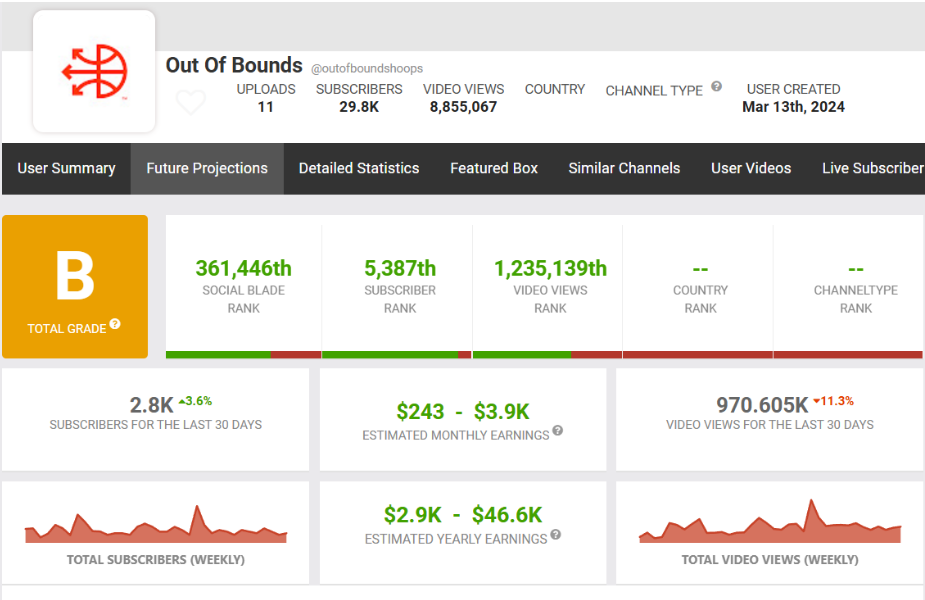 看一下他的收益,每個月收益在243-3.9k美元之間,而且他注冊賬號的時間并不長,是2024年4月注冊的,后期的收益肯定也不錯,這種球星的視頻在海外一直都比較歡迎。如圖:
