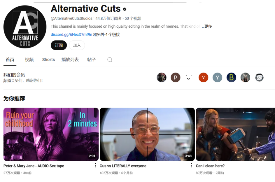 這個頻道主要做一些電影的精彩片段,還有一些搞笑的表情包來剪輯的視頻,比較有特點,這種賬號很考驗作者的混剪水平,因為油管的原創審核是比較嚴格的。如圖: