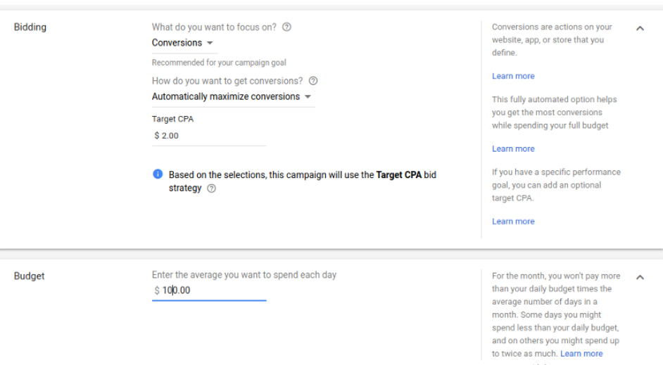 為了獲得足夠的轉化量,所分配的預算應至少為目標每次轉化費用的10倍。當然,預算越充足,越有助于你的廣告展現更好的效果。