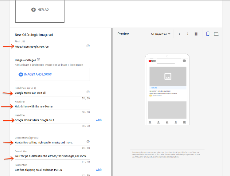8.輸入最終到達網址、標題和廣告內容描述(最多5個),如圖: