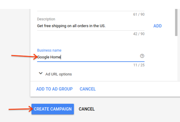 12.輸入您的商家名稱,然后選擇“制作廣告系列”,如圖: