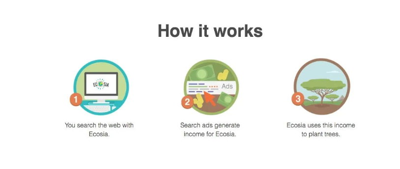 和大多數搜索引擎一樣,Ecosia也是依靠展示廣告和用戶點擊的行為獲取廣告收入。