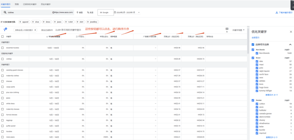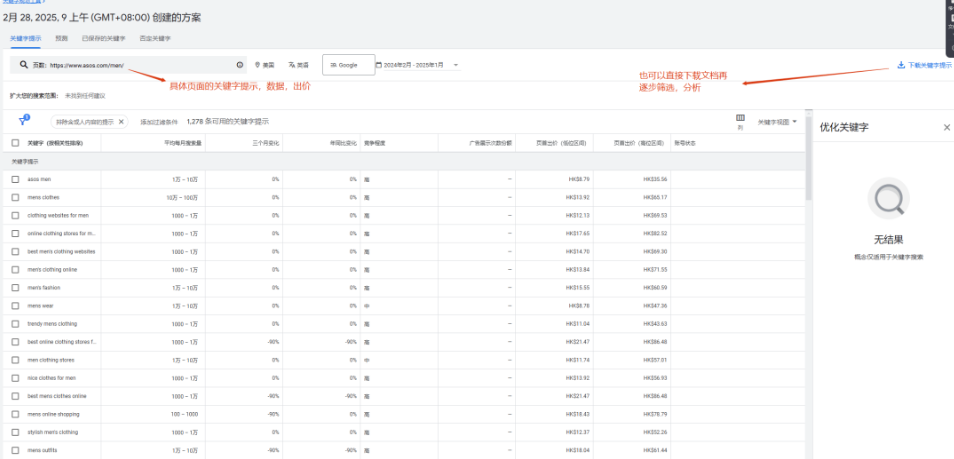 谷歌關(guān)鍵字規(guī)劃還提供了文檔下載,下載之后進(jìn)行本地篩選也是一個(gè)不錯(cuò)的選擇。如圖: