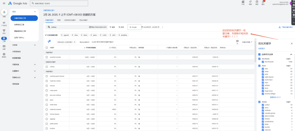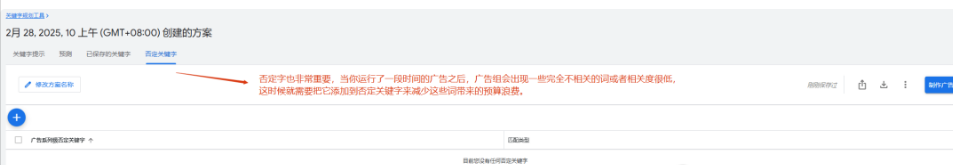 否定字用來排除不相關(guān)的詞組,節(jié)省預(yù)算。如圖: