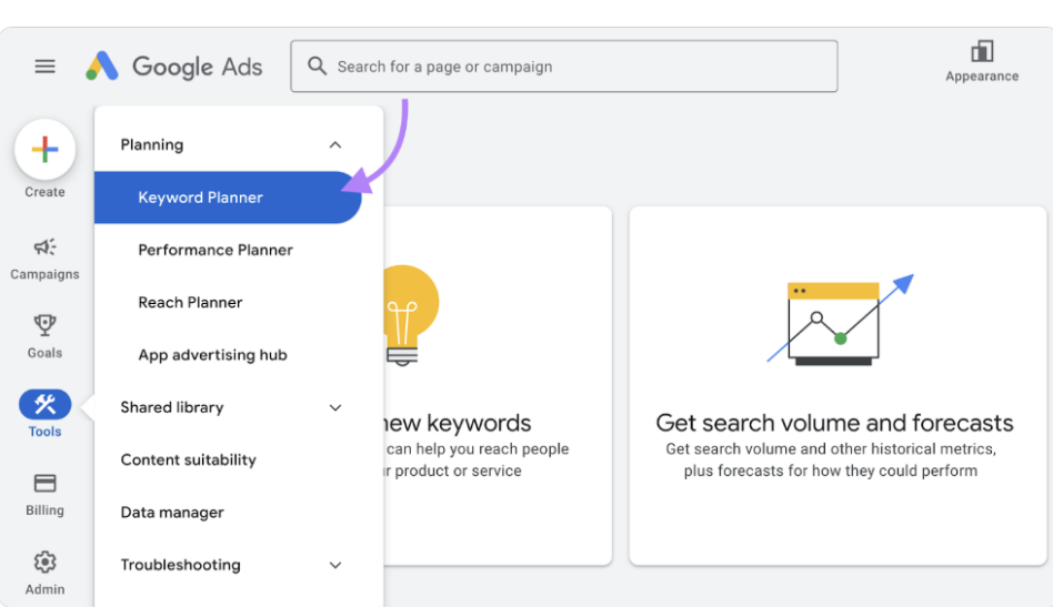 要訪問 Google的關(guān)鍵字規(guī)劃器,請轉(zhuǎn)至 Google Ads 中該工具的網(wǎng)址。
