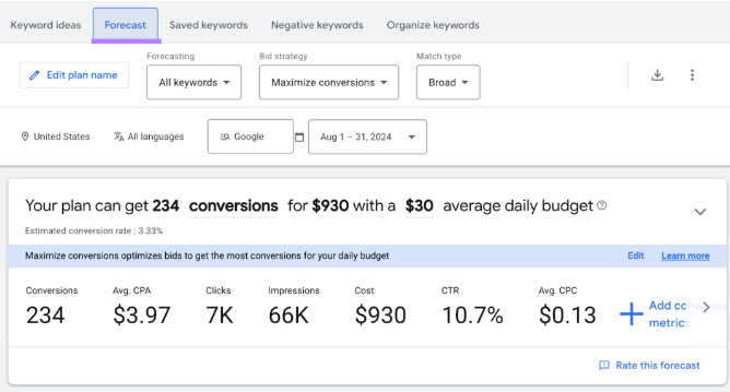 要在后續(xù)步驟中僅訪問這些PPC關(guān)鍵詞,請轉(zhuǎn)到關(guān)鍵詞規(guī)劃師中的“已保存的關(guān)鍵詞”選項卡。