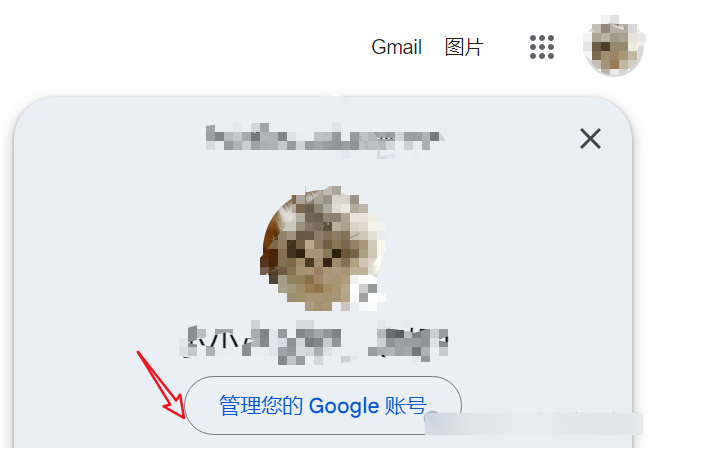第十三步:點擊右上角頭像和接下來彈出的”管理您的Google賬號”
