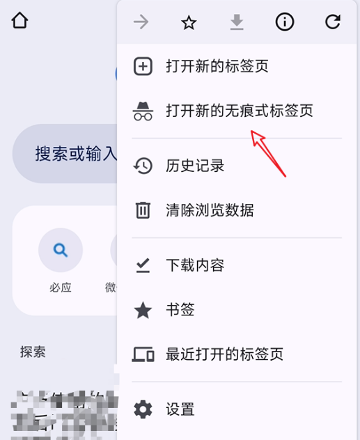 第二步:以手機端Chrome瀏覽器為例,其他手機瀏覽器也是有無痕模式的。