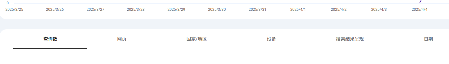 在圖表下方,你會看到一個表格,顯示哪些查詢、頁面、國家和設備為你的網站帶來了流量。此外,還有頁面體驗信息以及按日期分列的點擊次數。