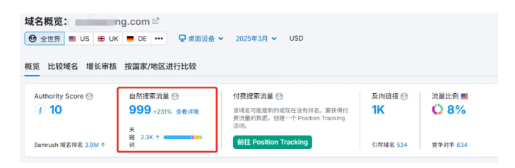 對于谷歌SEO的復盤,建議大家以季度為單位進行復盤。這個時候網站出詞來到341,但是自然流量沒有漲,還是很少。這種問題很常見,因為關鍵詞進入前十名的太少了,基本都要排在第二頁開外,獲得點擊的概率太小了。如圖: